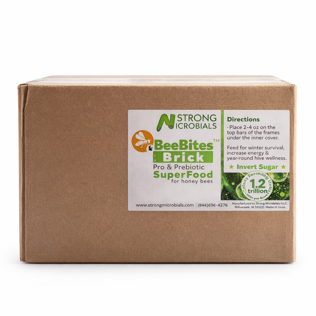 Bacillus bacteria produce enzymes such as amylase, which aid in the digestion of sugars and improve overall bee health. Bacillus also inhibits the growth of molds and fungi like Chalkbrood and pathogens like American Foulbrood, safeguarding the health of your hives.